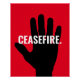 Waffenstillstand rot schwarz Hand fett Zoll Text gegen Krieg Poster / Zeichen. Weißer Text, schwarze Hand, roter Hintergrund. Vollständig anpassbarer Text. Nahost/Gaza-Konflikt