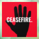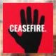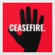 Waffenstillstand rot schwarz Hand fett benutzerdefiniert Text Anti-Kriegsfenster Klammern Zeichen. Weißer Text, schwarze Hand, roter Hintergrund. Vollständig anpassbarer Text. Nahost/Gaza-Konflikt