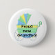 Ein Kinderwagen in Blauem, in Grünem und Gelb und Text, der "stolze neue Großmutter" auf Babymitteilung liest, knöpft.