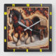 Die atemberaubende Reit- und Waggonuhr, eine perfekte Mischung aus rustikalem Charme und funktionaler Kunst, dieses exquisite Uhrwerk besticht durch eine majestätische Clydesdale, die detailreich dargestellt ist und einen wunderschön gearbeiteten Holzwagen durch eine ruhige, verschneite Landschaft zieht. Die Uhr ist elegant gerahmt durch einen 1,5 cm breiten schwarzen Holzrahmen, der den Reiz der Uhr erhöht. Das eingebettete Holz zeigt tiefe Schnitte mit einem karroten, texturierten Korn, hervorgehoben durch rote, graue und schwarze Brandspuren, die einen auffallenden Kontrast zum leichteren Holz schaffen. Dieses einzigartige Design dient nicht nur als bezaubernder Mittelpunkt in jedem Raum, sondern bringt auch eine Touch der Schönheit der Natur in sich. Für diejenigen, die Personalisierung schätzen, bietet diese Uhr eine aufregende Gelegenheit, sie wirklich zu Ihrem eigenen machen. Mit The Design Tool können Sie die Ziffernfarbe leicht anpassen und aus verschiedenen Schriftart-Stilen wählen, sodass Sie die Uhr auf Ihre individuelle Ästhetik abstimmen können. Ob Sie ein klassisches oder etwas Moderneres gewollt haben, diese Uhr kann sich Ihren Stilvorlieben anpassen und macht sie zu einem nachdenklichen Geschenk oder zu einer reizvollen Ergänzung Ihrer Wohngestaltung. Genießen Sie den Charme der Landschaft und die Eleganz der Handwerkskunst mit dieser bemerkenswerten Pferd- und Waggonuhr, wo Funktionalität und Kunst auf eine Art und Weise, die sicher beeindruckt.