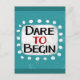 "Dare To Begin" ist ein niedliches inspirierendes oder motivierend Zitat mit weißer Akzent-Form, umgeben von weißen, texturierten, weißlichen, weißlichen, weißlichen Punkten.