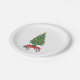 Weihnachten auf einer Rolle... Niedliches Weihnachtskunstdesign. Roter Wagen mit einem Weihnachtsbaum für eine Fahrt. Ein ansprechendes Design, ideal für Weihnachtsgeschenke und Partys. Ideal für Weihnachtsdekorationen, Kleidung und Geschenke.