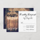 Rustikaler Country Western Wagon Wheel Mason Jar Chandelier Hochzeit RSVP Karten Ideal für eine rustikale Landhochzeit. Dieses Country Western Design hat ein Wagenrad mit hängenden beleuchteten Maurerkirsche zu einem einzigartigen Hochzeitskronleuchter. Der Hintergrund ist rustikales Holzdesign. Entsprechende Designs: Rsvp-Karten, Antwortkarten, Antwortkarten, Glaskeramikkarten für Hochzeitskarten, Konservierung von Glas-Rsvp-Karten, Maurerkronleuchter, Stallholz-Rsvp-Karten, Landkarten für Hochzeitskarten, Jute, beleuchtete Mason-Gläser, Waggon-Rad, Country-Western, rustikale Holzrumpf-Karten