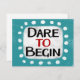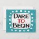 "Dare To Begin" ist ein niedliches inspirierendes oder motivierend Zitat mit weißer Akzent-Form, umgeben von weißen, texturierten, weißlichen, weißlichen, weißlichen Punkten.