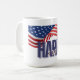 Zeigen Sie dem Land, das als nächster Präsident der Vereinigten Staaten gehört, mit dieser stilvollen Kaffee-Tasse! "Kamala Harris 2024" in patriotisch gefärbtem Text mit wavy-American-Flagge