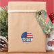 Werbeartikel für die Präsidentschaftswahl in Amerika. Abstimmung unter amerikanischer Flagge. Rot weiß und blau amerikanische Flagge Thema.