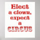 ParkLaneII - Funny Poster, mit 'Elect a clown, erwarten einen Zirkus' Anti Trump Protestmotto in lustiger, roter, traditioneller Zirkustypografie.