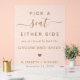 Chic Hochzeit nicht zugewiesene mattierte Acrylzeichen mit "Wählen Sie einen Sitzplatz, auf beiden Seiten, Sie werden von den Bräutigam und Braut geliebt" in schlichter Goldtypografie und ein elegantes goldenes Drehbuch mit Wimpern, ein Herz und Ihre Vornamen und Hochzeitstag.