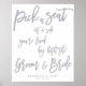 Wählen Sie einen Sitzplatz, kein beidseitig bedrucktes Hochzeitszeichen mit Silberfolieneffekt (Imitate, als Bild gedruckt) und anpassbaren Text - Sie können Braut und Bräutigam Name und Hochzeitstag hinzufügen. Die Abmessungen des Schildes (Poster) betragen 16 Zoll x 20 Zoll.
