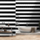 Ein minimalistisches klassisches, großes, horizontales Streifenmuster in Schwarz und Weiß. Gestalten Sie Ihre eigene Tapete, indem Sie die Farben entsprechend Ihrer Dekoration ändern. Passen Sie sowohl die schwarzen als auch die weißen Farben in der digitalen Vektorgrafik an. Wählen Sie trendige Farben für Ihr modernes Zuhause Interieur.