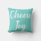 Das moderne Kissen "Choose Joy" bietet modernen, lässigen Script-Schriftart in Weiß auf Aqua-Hintergrund.