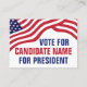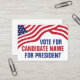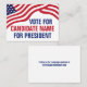 Individuell anpassbare Visitenkarte für Kandidaten für politische Kampagne mit der amerikanischen Flagge auf Ihrem Text in rot, weiß und blau. Fügen Sie bei den Wahlen 2024 Ihre Wahl für den Präsidenten oder ein anderes politisches Amt hinzu. Eigener Text.