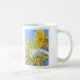 Blaue und gelbe Sonnenblumen auf weißer Tasse "die Brise an der Dämmerung hat die Geheimnisse, zum Sie zu erklären; Gehen Sie nicht zurück zu schlafen" (Rumi)