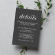 Eine wunderbare Einlage, um alle Details, die nicht auf der Hochzeitseinladung oder rsvp-Karte enthalten sind - wie die Empfang-Informationen oder die Hochzeitswebsite. Perfekt koordiniert mit der True Simplizität 2 Kollektion. Dies ist eine Mix- oder Match-Auflistung. Bitte kontaktieren Sie mich, wenn Sie Hilfe beim Anpassen des Textteils dieser Details wünschen.