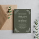 Diese wunderbar schlichte und dennoch elegante Einladung zum Hochzeitsfeiern bietet einen Rahmen von gezeichnet Blätter, die an den Einladungstext grenzen. Bitte kontaktieren Sie mich, wenn Sie Hilfe bei der Anpassung des Textes wünschen.