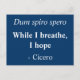Eine hellblaue Postkarte mit lateinischer Phrase und englischer Übersetzung. Dies ist ein Zitat von Cicero, "Während ich atme, hoffe ich".