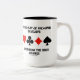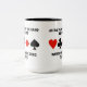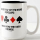 Zeigen Sie mit dieser Tasse mit den vier Kartenkarten-Anzügen Ihre Wry Bridge / Duplikatbrücke-Haltung zusammen mit der folgenden Brückenbeobachtung: "As The Play Of The Hand Develops Watch How The Odds Change". Sie brauchen kein begeisterter Bridge-Spieler zu sein!