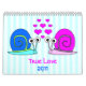 Wahrer Kalender der Liebe-2011. Aufmachung der niedlichen Cartooncharaktere.