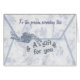 Diese Karte sieht wie ein dekorativer Umschlag mit einer kleinen Geschenkkarte aus, die heraus unter von der Klappe späht, ausgelöst mit einem kleinen Satinbogen und einigen gekräuselten Bändern. Es ist die perfekte Weise, ein Währungsgeschenk "einzuwickeln". Der Text auf der Klappe selbst wird leicht besonders angefertigt oder gelöscht, und es ist auch ziemlich einfach, eine persönliche Mitteilung für den Druck auf dem Innere, unter Verwendung des redigierenden Werkzeugs einzutragen.