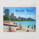 Hawaiis berühmter Waikiki Beach in einer Vintagen Karte im Stil der 60er Jahre.
