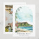 This design was created to feel like a soft, storybook glimpse into your destination wedding. The front features a dreamy watercolor view of Waikiki with Diamond Head in the distance, layered with tropical florals and ocean tones that instantly set the mood for a beach celebration. It feels calm, romantic, and just a little bit transportive.