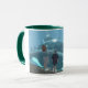 Diese painterly Wiedergabe von zwei Kindern, da sie zwei Orcawale aufpassen, Vergangenheit zu schwimmen, hat eine friedliche, träumerische Qualität.