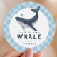 Verleihen Sie Ihren Partygeschenken mit diesem entzückenden Wal-Danke-Aufkleber eine spaßige Note! Mit einem süßen Wasserfarben-Wal, der auf einem blau karierten Hintergrund Blasen bläst, ist dieser runde Aufkleber perfekt für eine unter dem Meer oder ozeanfarbene Geburtstagsfeier. Passen Sie ihn an den Namen Ihres Kindes an, um eine süße und spielerische Note auf Goodie-Tüten, Umschlägen oder Partygeschenken zu hinterlassen.
