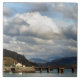 Blick vom Hafen Barmouth auf die Berge, die Mündung und die Eisenbahnbrücke. Wales UK.