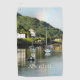 Nach einem Tag des Regens kommt endlich die Sonne raus und ein Regenbogen erscheint am Himmel, in dieser schönen Landschaft von Aberdyfi Hafen in Wales, mit Booten im Wasser und einige der Dorfhäuser.