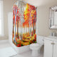 Dieser Duschvorhang hat ein Walddesign darauf.