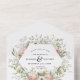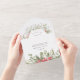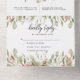 Diese zarte Hochzeitseinladung in Aquarellfarben hat traditionelle Weihnachtsfarben, Olivengrün und Cranberry rot auf hellem Weiß. Die Hochzeitsworte sind alle in einem Blumenrahmen zentriert. Der gesamte Text kann bearbeitet werden, um den Bedürfnissen der Veranstaltung Anzug. Koordiniert mit anderen Gegenständen der Forest Foliage Wedding Collection. Der untere Teil dieser Einladung ist eine abreißende RSVP-Karte mit der auf der Rückseite aufgedruckten Rücksendeadresse.