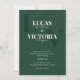 Mit unserer eleganten Forest Green, Black and White Wedding Einladung verkünden Sie Ihren besonderen Tag. Diese schöne Einladung enthält ein prominentes Monogramm der Initialen des Paares vor einem tiefen, waldgrünen Hintergrund, betont durch fette grüne Details. Vollständig anpassbarer Text erlaubt Ihnen, die Einladung auf Ihre individuellen Stil und Ihre Hochzeitsdetails perfekt abzustimmen. Die zeitlose Farbpalette sorgt dafür, dass diese Einladung für jede Jahreszeit perfekt ist und Ihre Hochzeit mit einer Touch von Eleganz und Naturschönheiten bereichert.