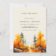 Fall Save the Date im Wald. Wasserfarbe Fall Woods Sammlung. Moderne Aquarellbilder des Waldes in Herbstfarben. Perfekt für Hochzeiten, Brautduschen und Babyduschen, Geburtstage, Party im Freien