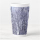 Dieses digitalisierte, grafische Foto aus einem kahlen, bewaldeten Wald, dargestellt in gedämpften Tönen, violett, lila, blau, weiß, grau und schwarz-is gegossen, in den anhaltenden Spuren eines blassen, blauen, Dämmerlichts.