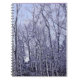 Dieses digitalisierte, grafische Foto eines kahlen, bewaldeten Waldes wird in gedämpften Farbtönen, violett, lila, blau, weiß, grau und schwarz dargestellt, in den anhaltenden Spuren, in einem blass-blauen, Dämmerlicht.
