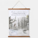 Mit winterfarbener Wasserfarbenszene, die Sie mit Ihrem eigenen Text anpassen können, oder, falls kein Text erforderlich ist, den Beispieltext löschen. Die Gestaltung umfasst schneebewaldete Wälder mit einer Ente, die auf dem See schwimmt. Die eine hat eine Landkabine und eine Schleuse, während die andere eine Eule auf einem Reifenschwung hat.