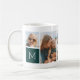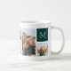 Dieses personalisierte Foto Tasse Design bringt 6 Ihrer Lieblings-Schnaps vorne und Mitte, zusammen mit einem Single initiale Monogramm auf jeder Seite. Mit sechs quadratischen Fotos von Freunden, Kindern, Enkelkindern, Haustieren oder Ihren Lieblingsorten, mit Ihren ersten weißen Buchstaben auf einem waldgrünen Taupe Platz.