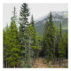 Dieses Design besticht durch ein Foto einer Waldszene mit Nadelbäumen und einen Berg im Hintergrund.