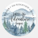 Lass das Abenteuer beginnen, rustikale Aquarellwald Babydusche Rückkehr Adresse Etikett Aufkleber, mit Kalligraphie Skript Typografie. Die vollständige Produktsammlung für dieses Design finden Sie unter: https://www.zazzle.com/collections/forest_adventure_baby_shower-119311648144421112