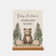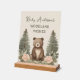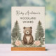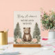 Dieses bezaubernde Walddesign besticht durch einen niedlichen braunen Bären, der von blütigen Blumen und Bäumen umgeben ist.