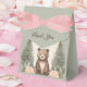 Dieses bezaubernde Walddesign besticht durch einen niedlichen braunen Bären, der von blütigen Blumen und Bäumen umgeben ist.