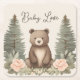 Dieses bezaubernde Walddesign besticht durch einen niedlichen braunen Bären, der von blütigen Blumen und Bäumen umgeben ist.