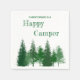 Glücklicher Camper Geburtstag mit Waldbäumen in verschiedenen Schattierungen grün