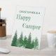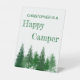 Glücklicher Camper Geburtstag mit Waldbäumen in verschiedenen Schattierungen grün