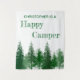 Glücklicher Camper Geburtstag mit Waldbäumen in verschiedenen Schattierungen grün