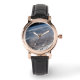 Uhr, Klassische Damenuhr mit schwarzen Lederarmband