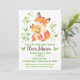 Ein Aquarellentwurf eines Mutterfuchses, der ihr Baby umarmt. Diese entzückende Einladung kennzeichnet Blätter und Grün und Ideal für eine Waldthemed Babydusche entweder für einen Jungen oder Mädchen. Diese Geschlechtsneutrale person laden auch schöne moderne Kalligraphie der Eigenschaft ein.