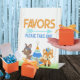 Blue Woodland Forest Camper Gastgeschenk Sign. In Blau, Orange und Braun. Mit einem zauberhaften wilden Fuchs, süßbraunem Hirsch und Stammeszelt. Teil unserer Wild One Kollektion, aber funktioniert gut für jedes Camping oder Waldtier Party! Clipart by Pixel Paper Prints