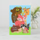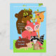 Einladung für Kinder mit niedlichen Waldtieren wie Bär, Hirsch, Vögel, Rotfuchs, Schweine, Marmelade und Eichhörnchen!