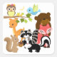 Unsere Waldfreunde T - Shirt, Karosseriebücher, Tasse, Taschen, Karten, Wanduhren, Pflaster, Magnete, Teller und andere Dinge sind mit bezaubernden Waldtieren wie einer Eule auf einem Ast, einem blauen Vogel, Braunbär, Rotfuchs, Raccoon, Eichhörnchen mit Eichel und einem Hirsch!